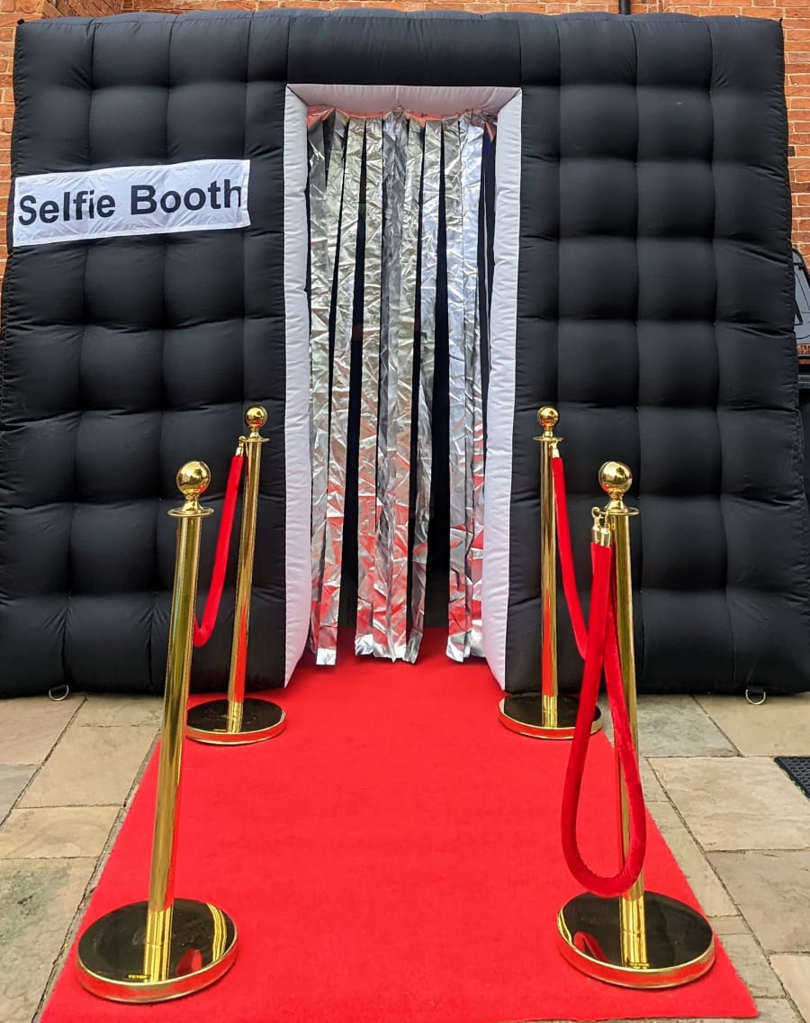 Glowing Stylish Black LED Photo "Selfie" Booth Hire 3m W x 2.1m D x 2.4m tall (10ft x 7ft x 8ft), White o the inside and glows multi colours for a fantastic effect.