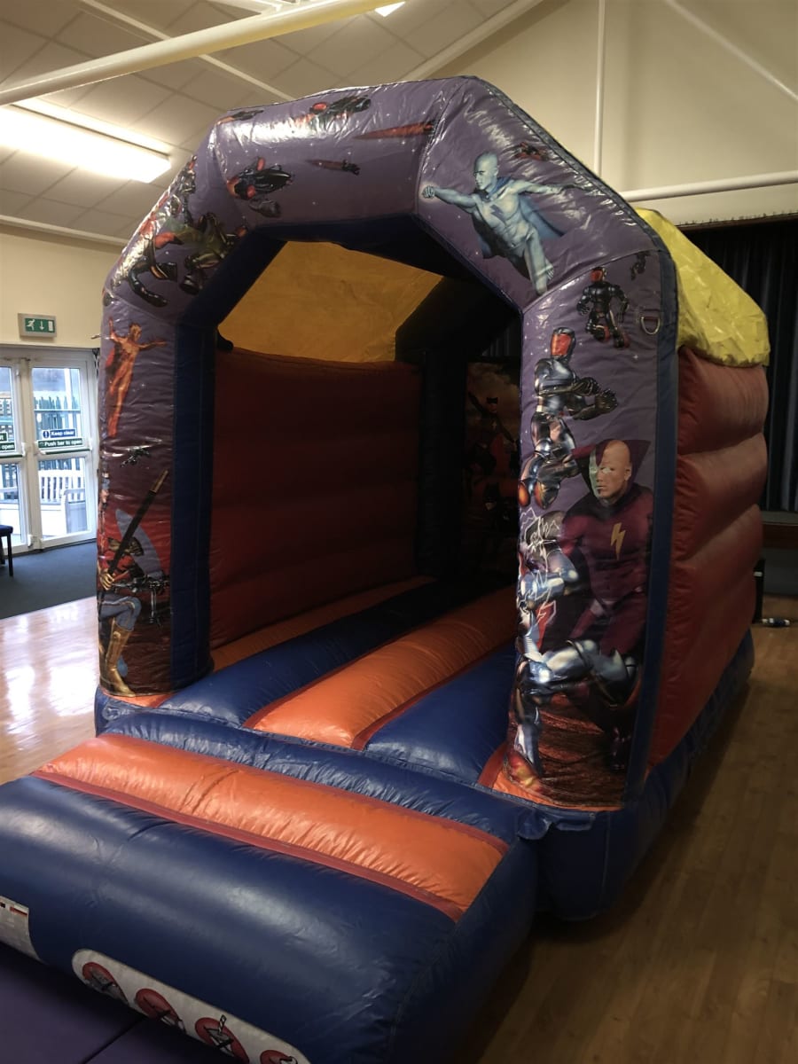 8ft wide x 10ft long x 9.3ft tall Action Hero Bouncy Castle our smallest castle