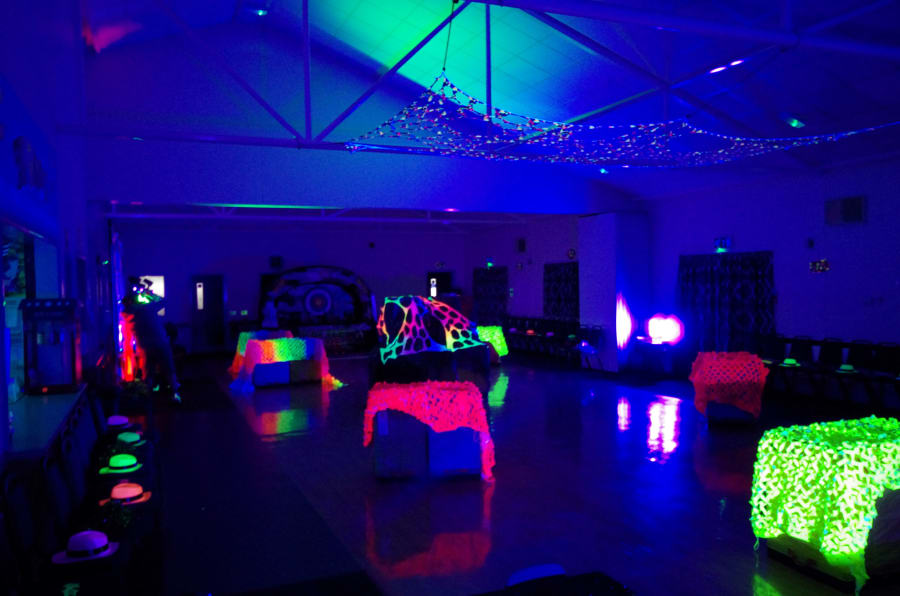 £350 for the NEON UV Nerf Wars in the Dark. (Our venue in Solihull is perfect with Black out blinds so any time in the day or night is perfect, or you provide the venue, BUT it needs to be dark for the UV Cannons, Neon Camouflage and props to work effectively.)