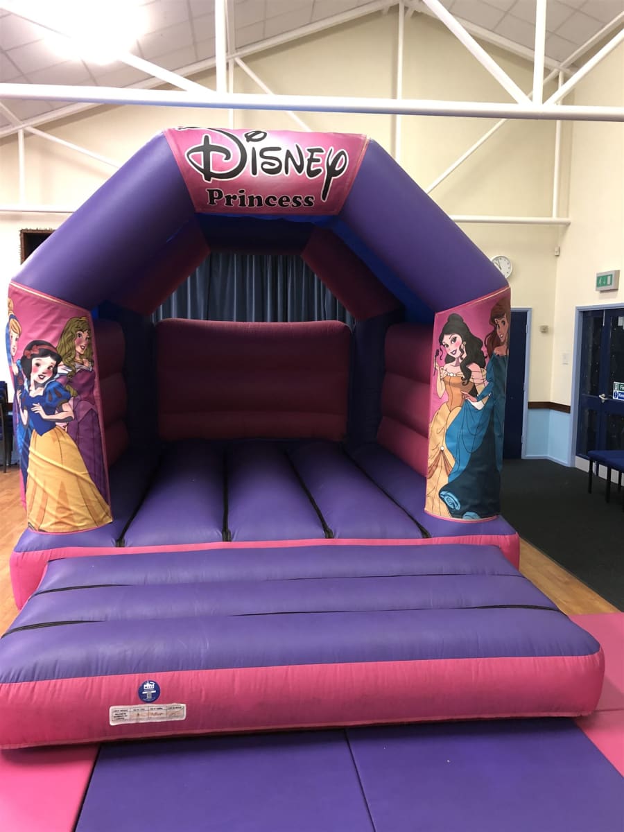 11ft wide x 15ft long x 9.5ft tall bouncy castle with Disney Princess Theme.