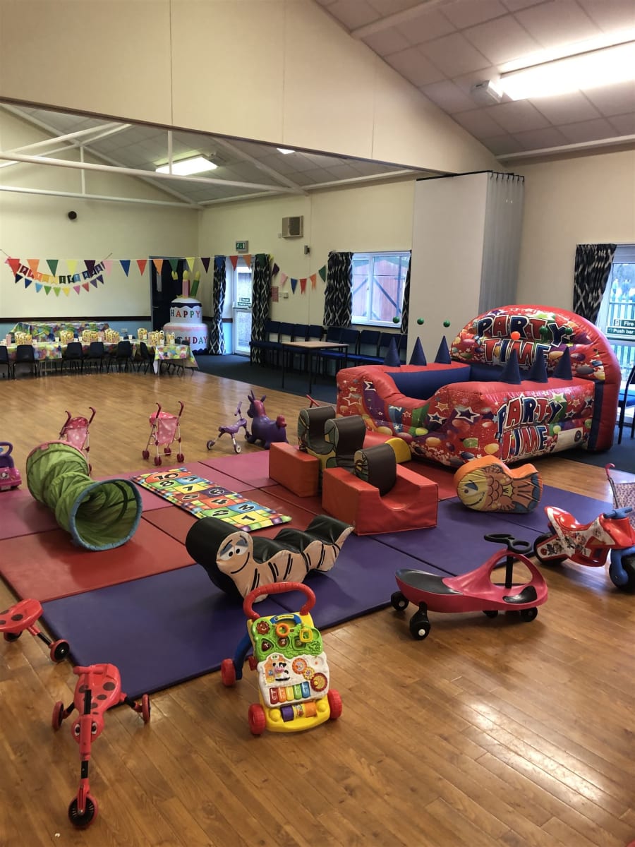 Suitable for all ages, bouncy castle with side slide, party time theme with balloons and rain cover, disco light for extra sparkle at £10 extra.