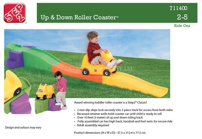 The Step 2 Up & Down Roller Coaster will provide endless enjoyment and hours of fun - climb up the steps either side, sit on the car, and 'wheee', down we go.