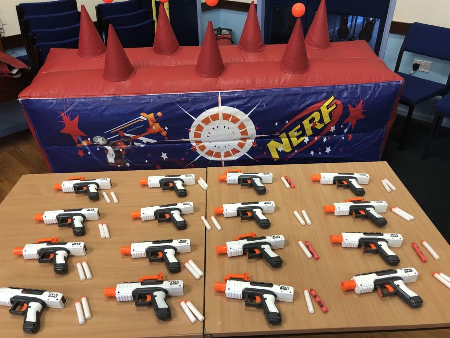 B Super Hero & Inflatable foam blaster Gun Hire Package
