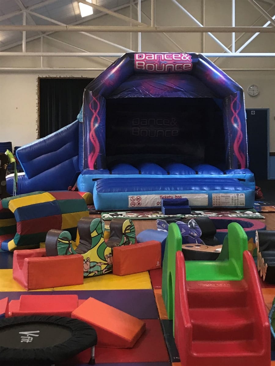 Suitable for all ages, bouncy castle with side slide, dance & bounce theme and rain cover, disco light for extra sparkle at £10 extra.