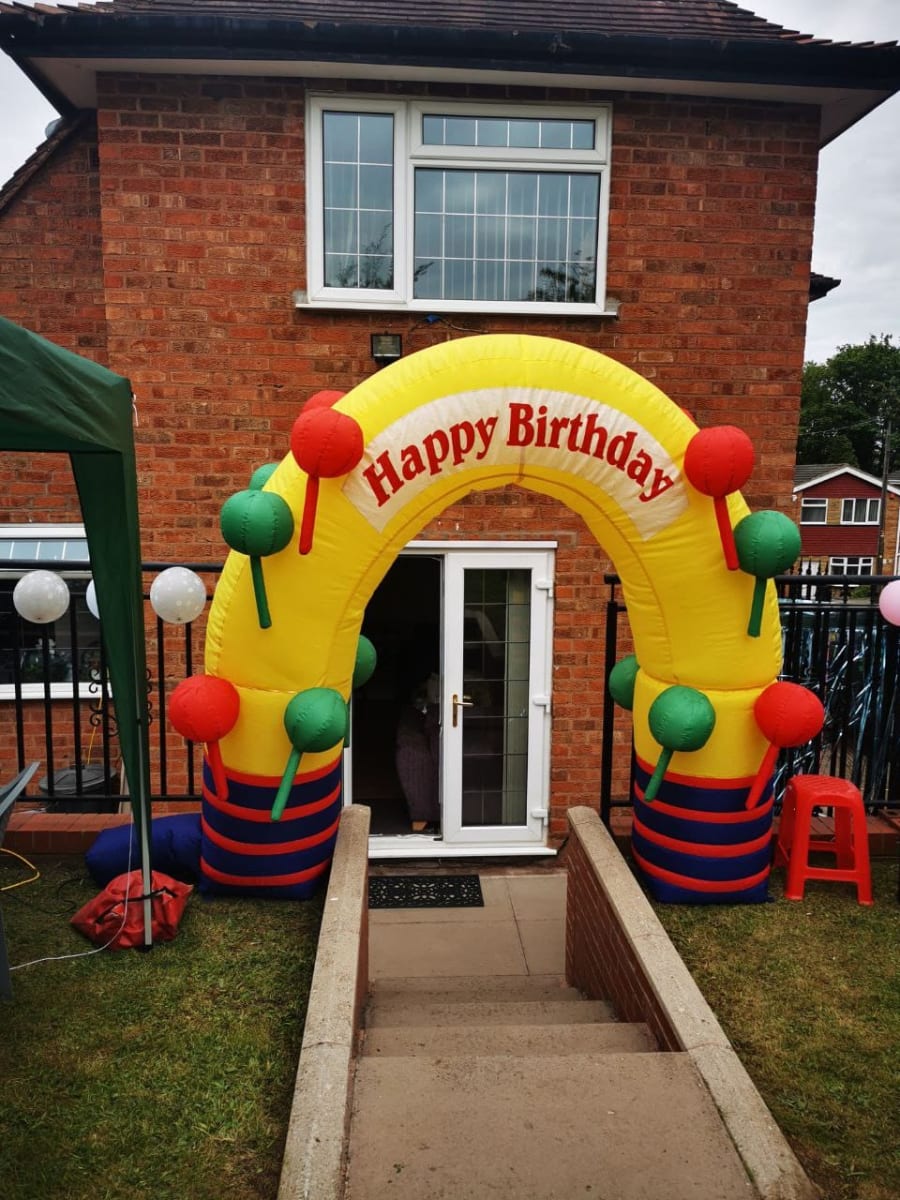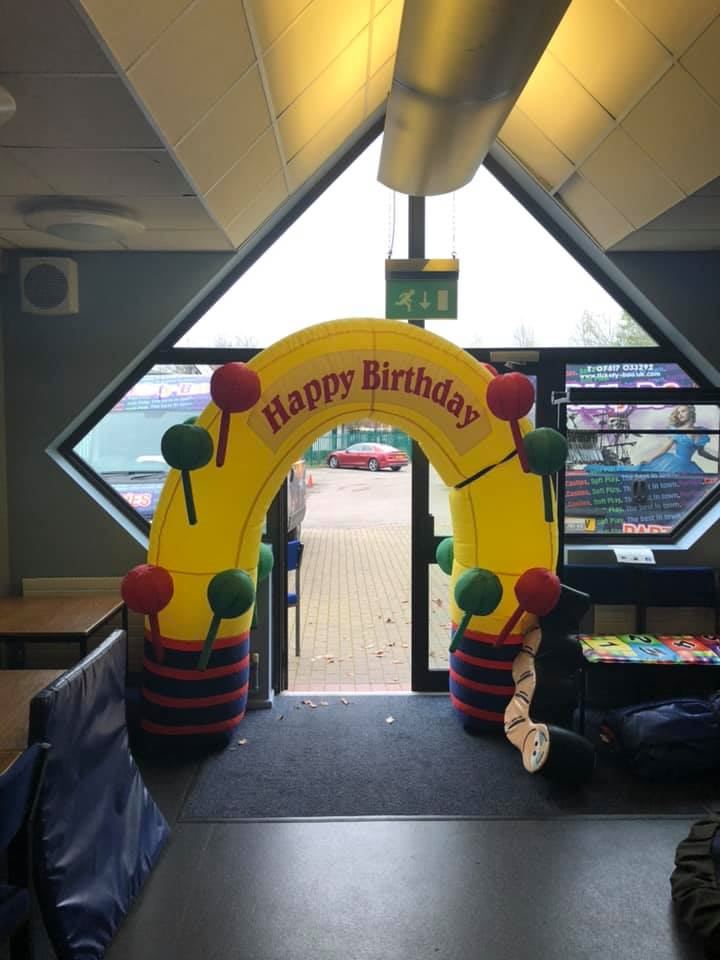 We have an inflatable balloon arch, inflatable birthday cake, bunting and banners as well as balloon design table clothes.….