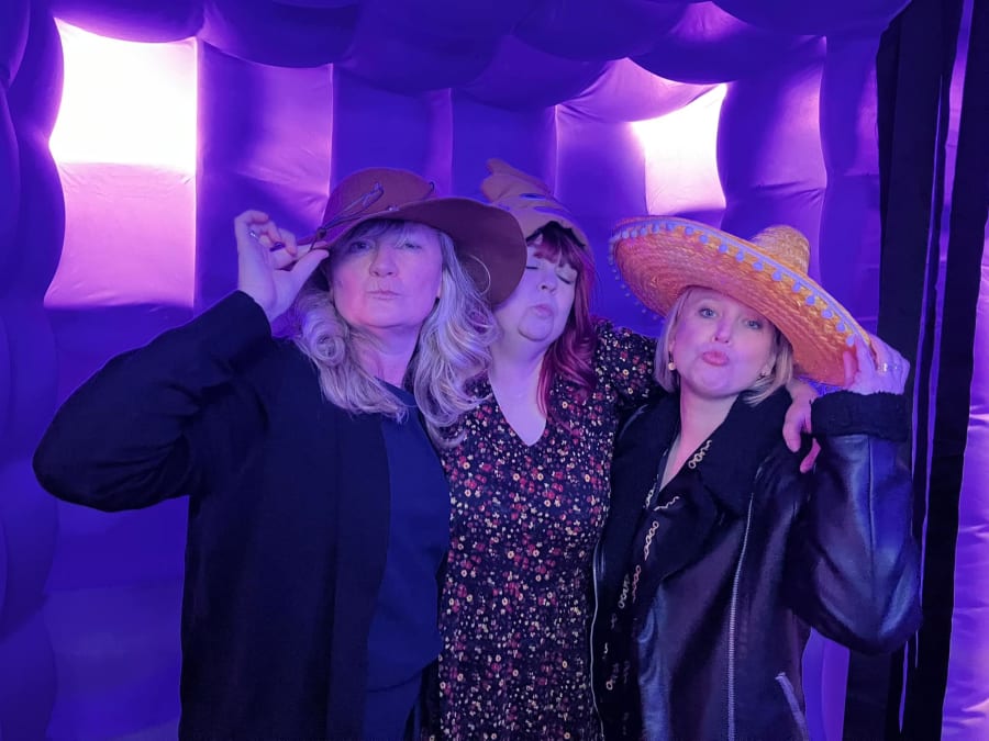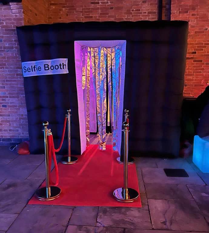 Glowing Stylish Black LED Photo "Selfie" Booth Hire 3m W x 2.1m D x 2.4m tall (10ft x 7ft x 8ft), White o the inside and glows multi colours for a fantastic effect.